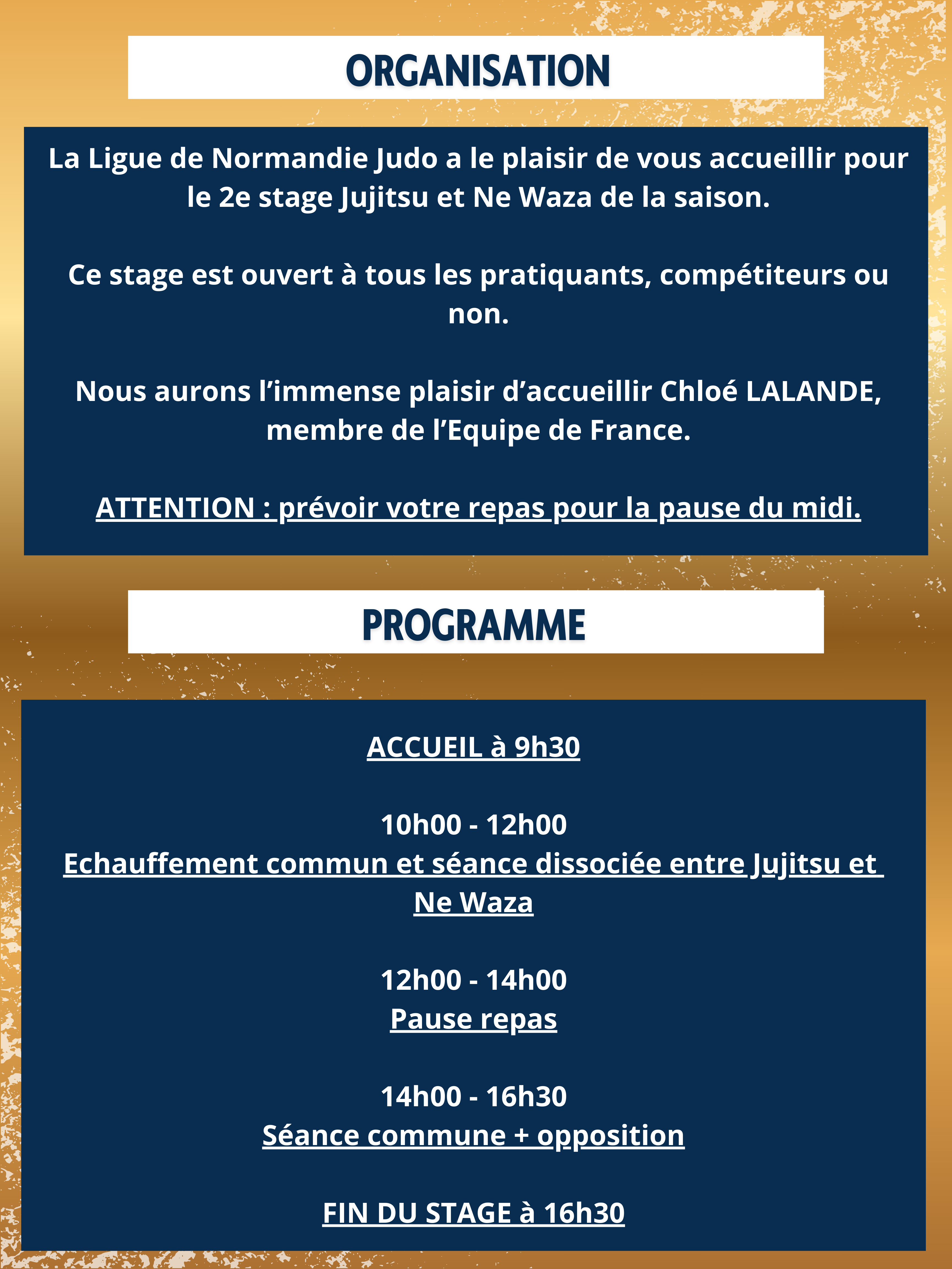 Le 2e stage régional jujitsu et ne waza se déroulera le Samedi 31 Janvier 2026, au dojo d'Alençon.